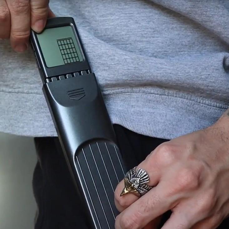 Fretzy™ isthe most compact and effective guitar trainer. Equipped with an LCD guide screen, it lets you practice finger placements. Set the screen to a comfortable angle and practice anytime.